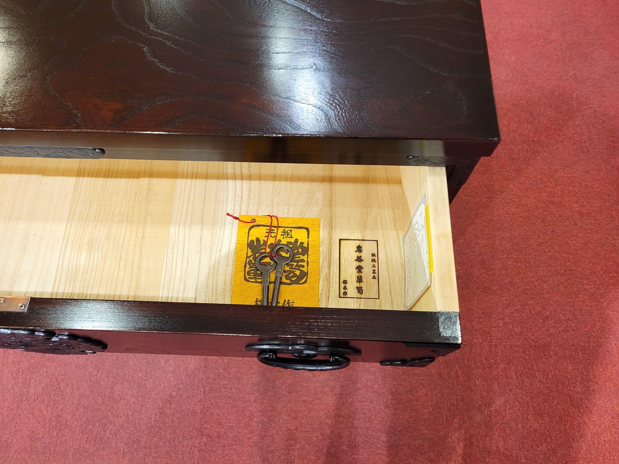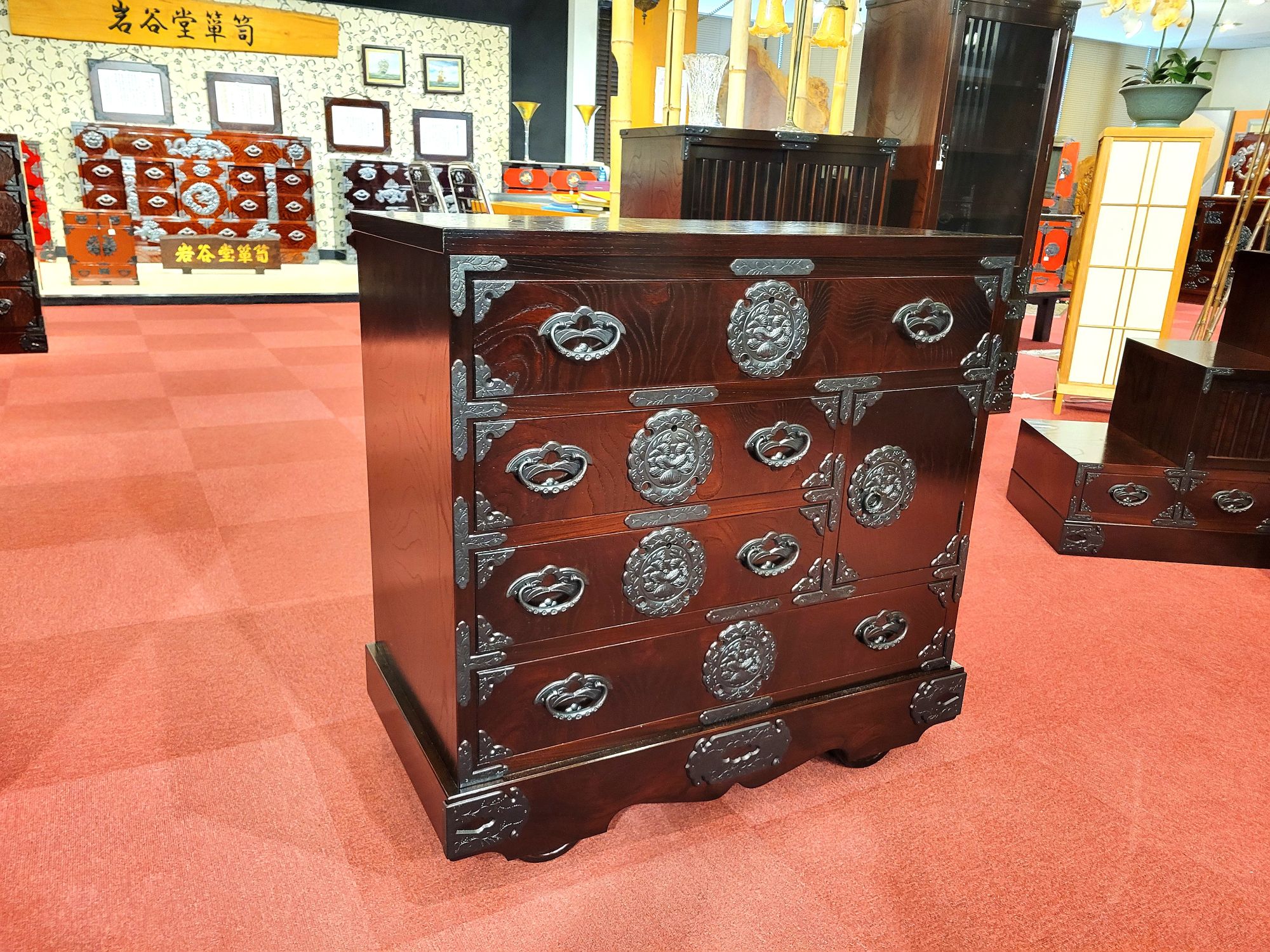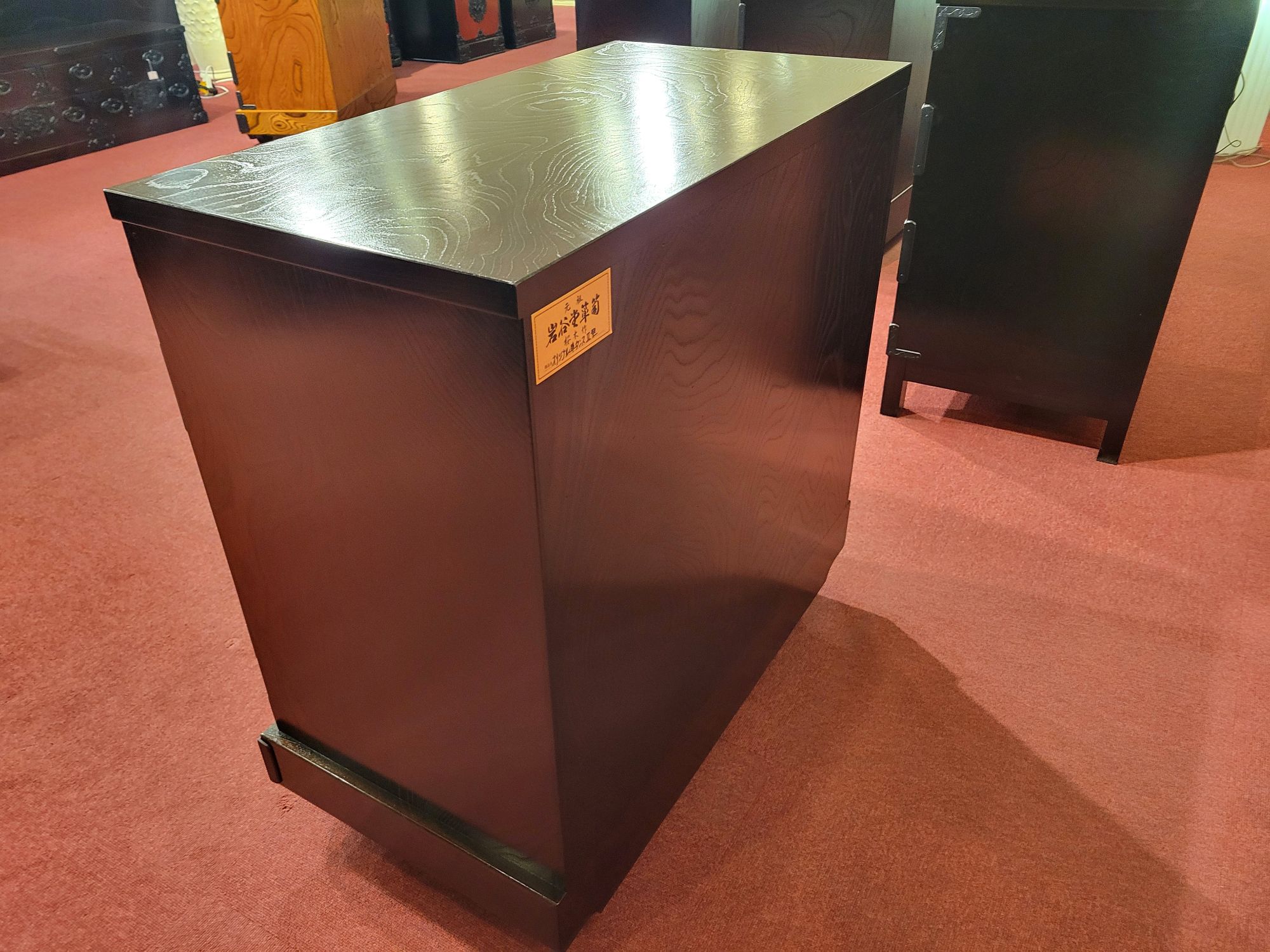 サイズ(単位mm) W800 x D420 x H780 拭き漆塗り 南部鉄器金具 新丸ボタン *新規入荷分より金具が少し変わります。
