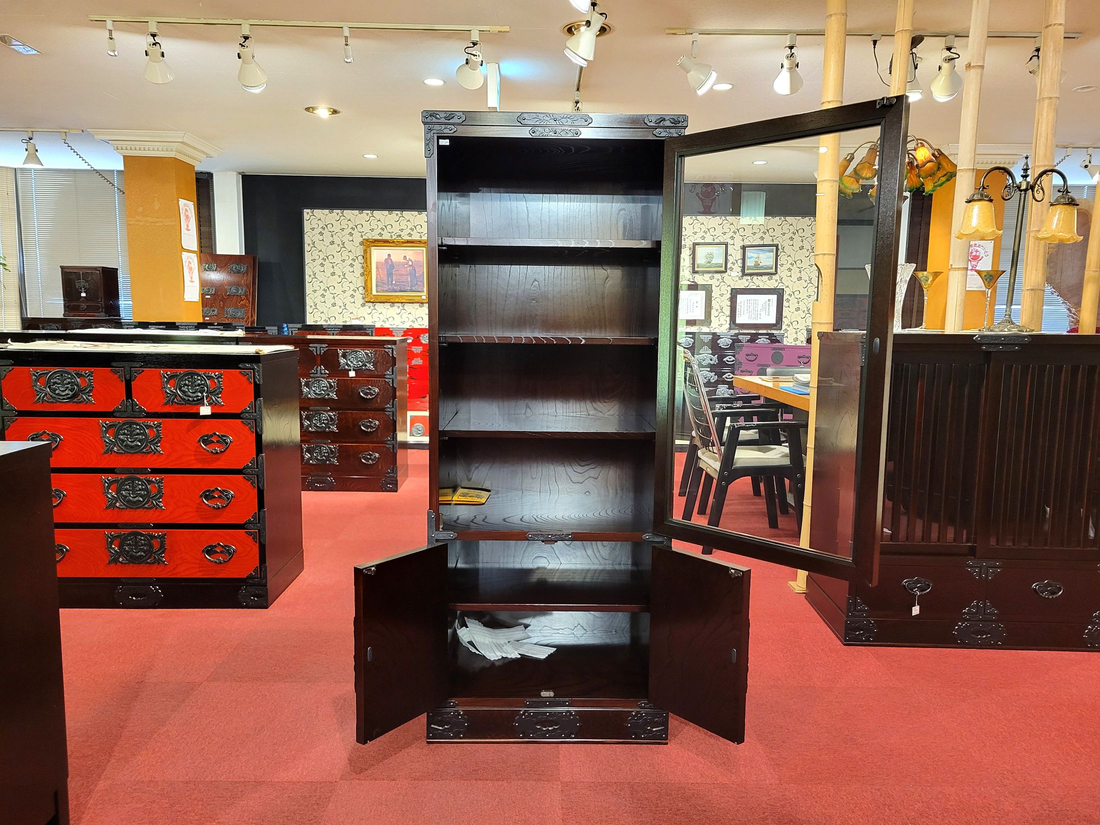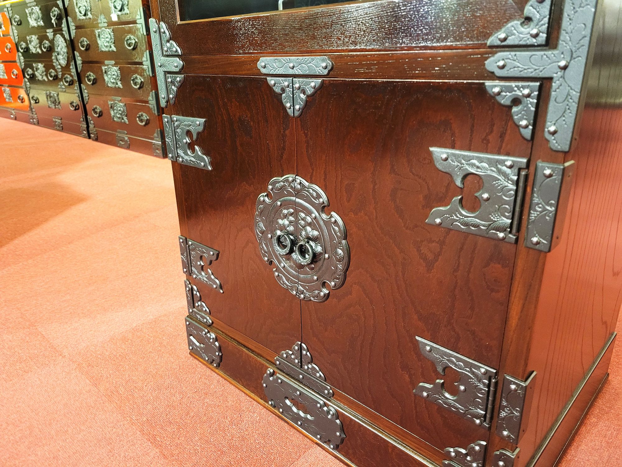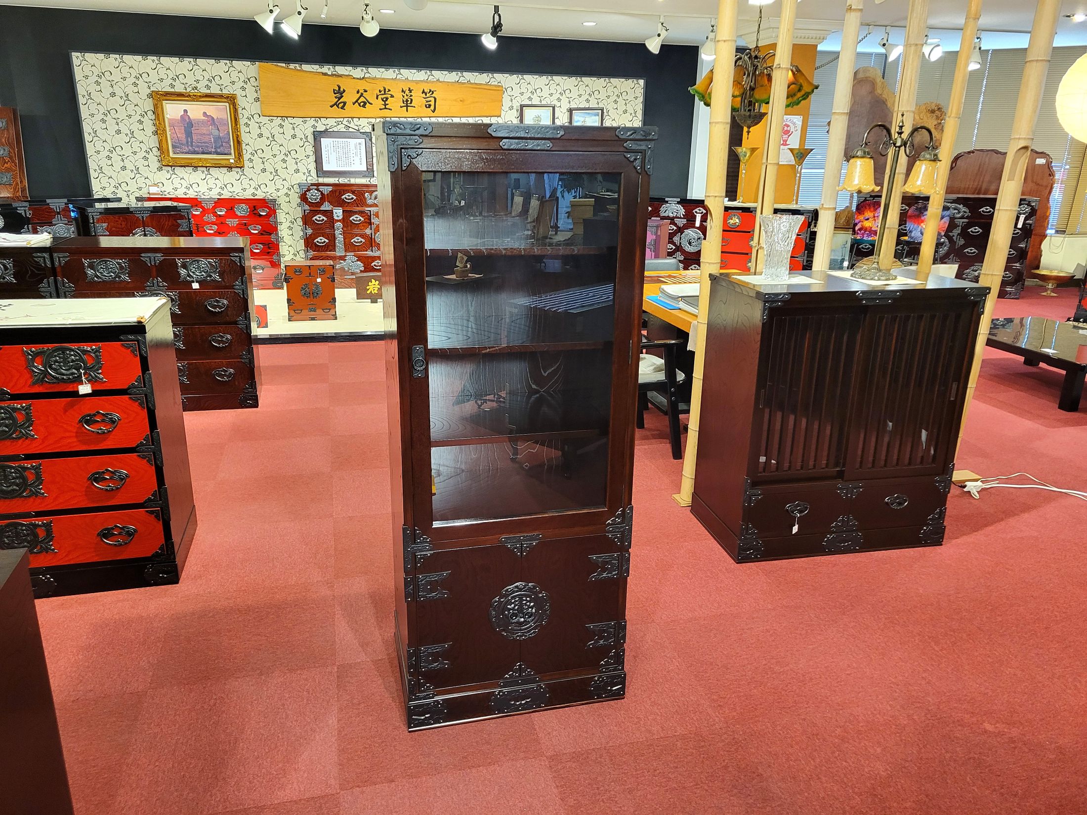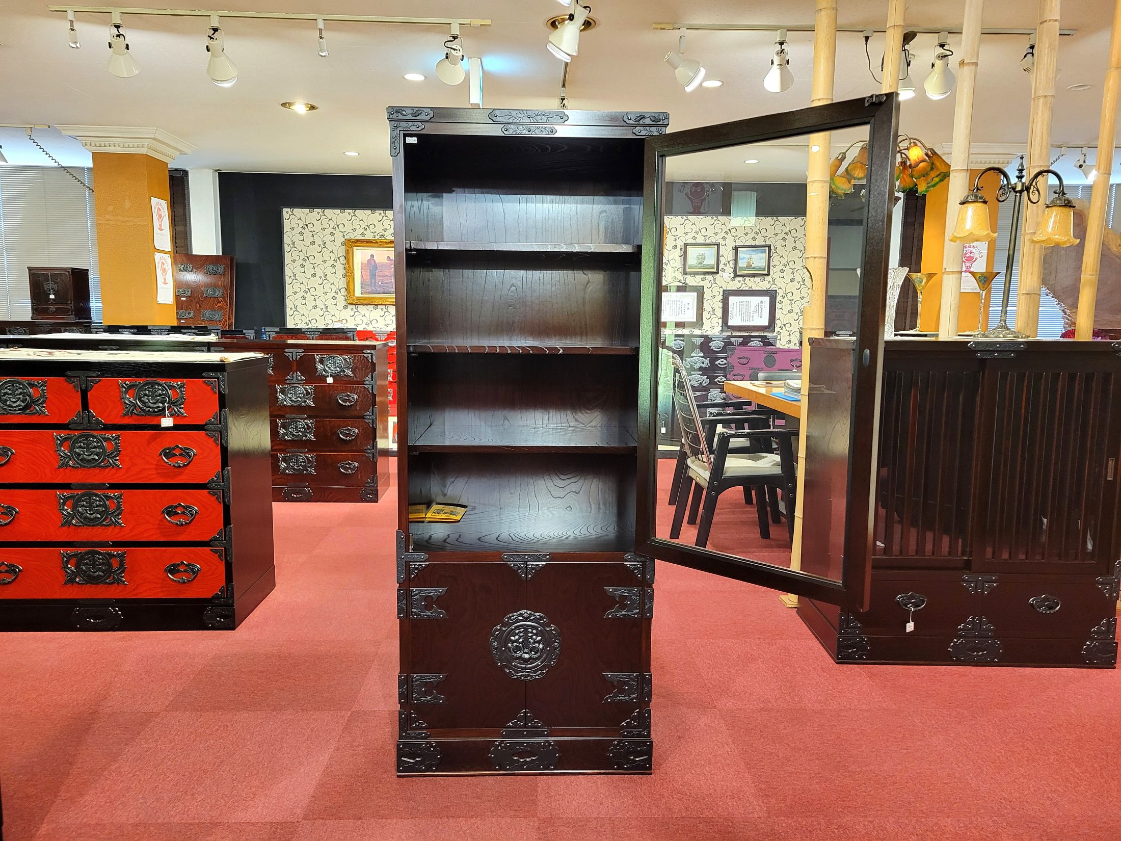 サイズ(単位mm) W600 x D450 x H1500 拭き漆塗り 南部鉄器金具