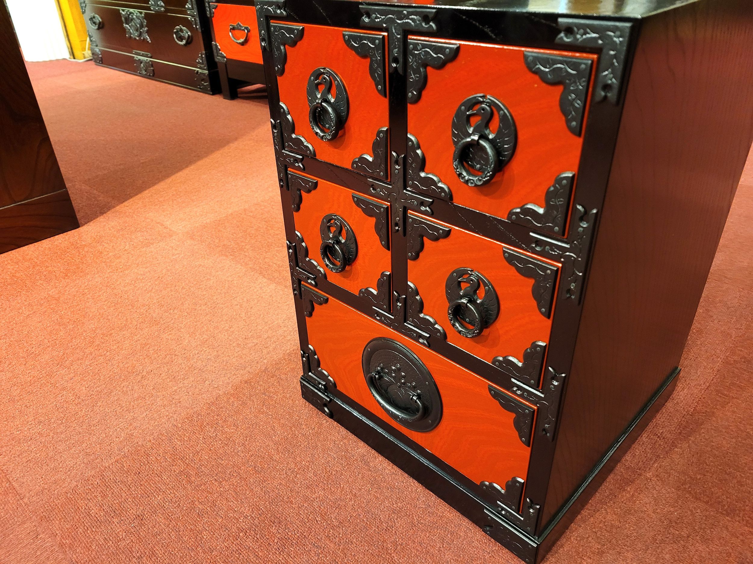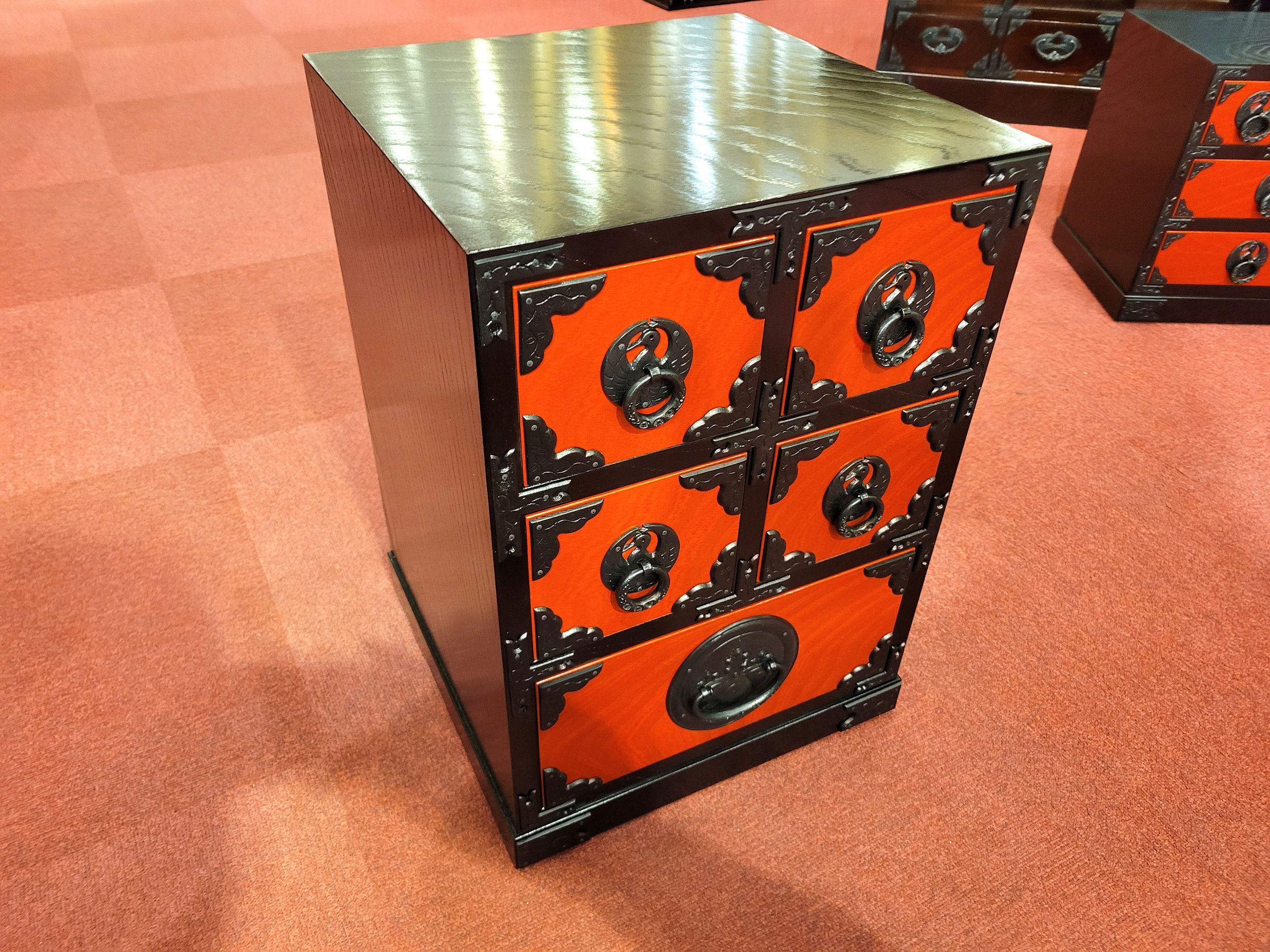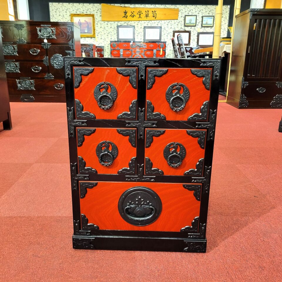 サイズ(単位mm) W360 x D350 x H500 拭き漆塗り 南部鉄器金具 鶴