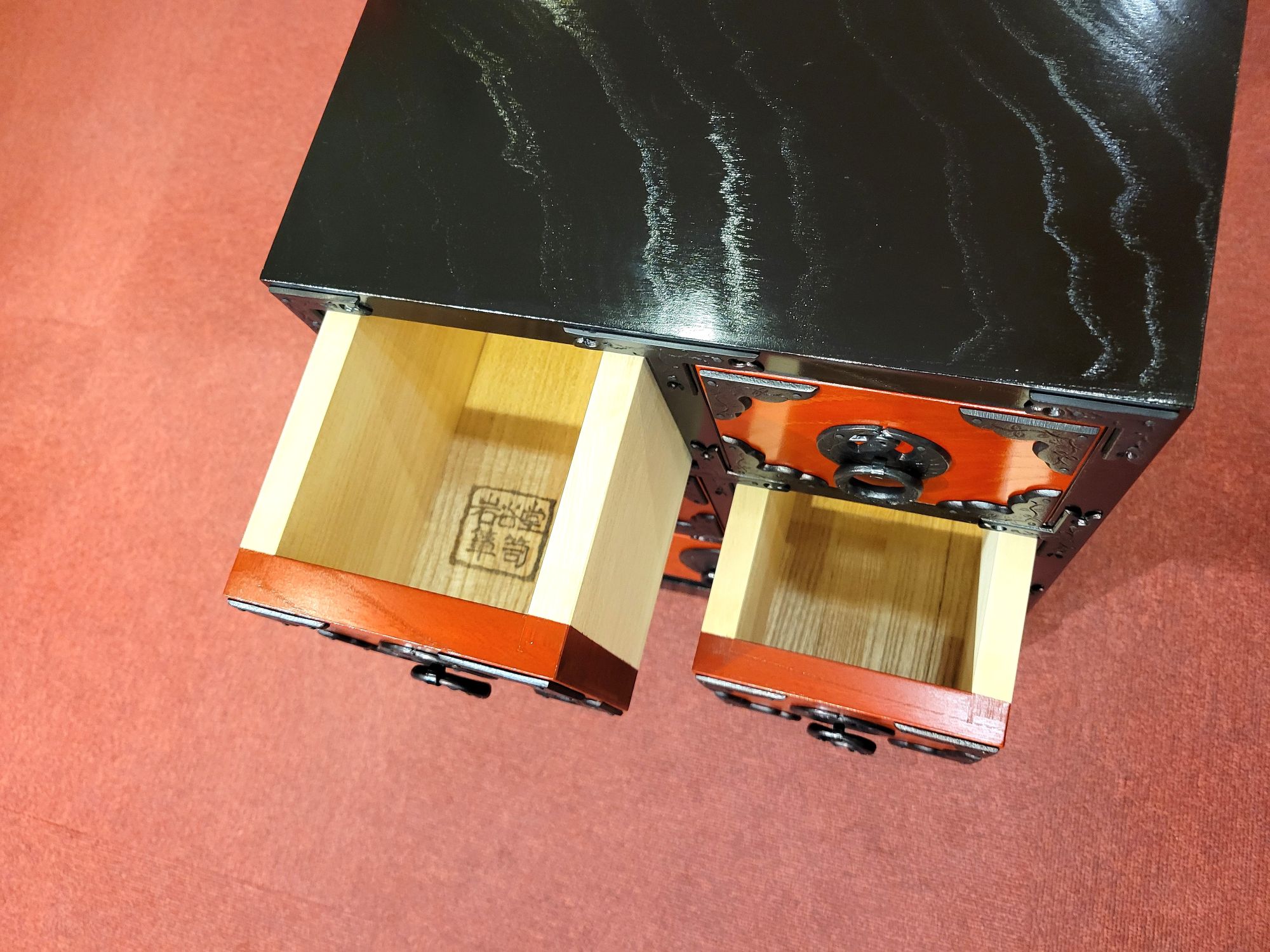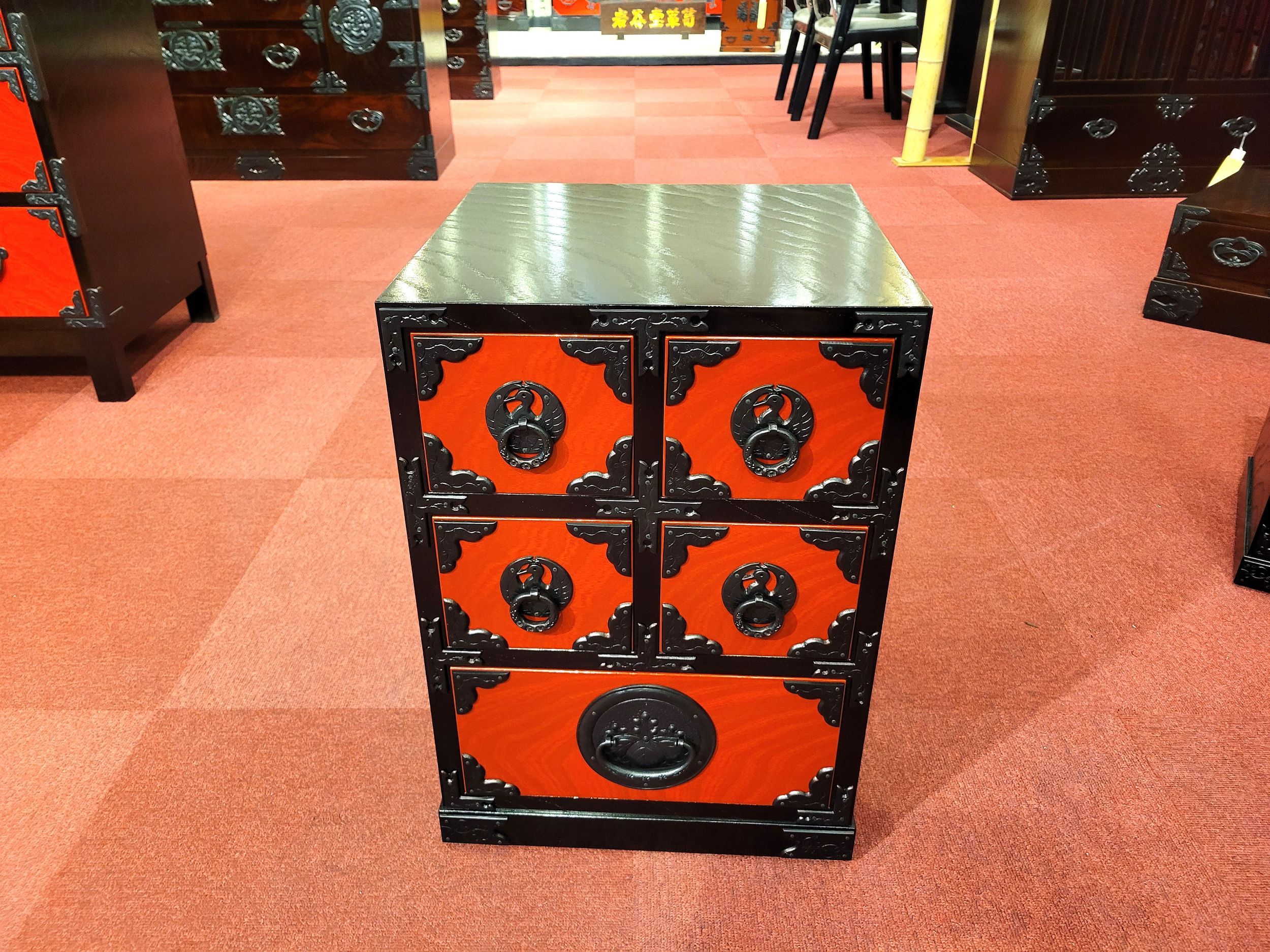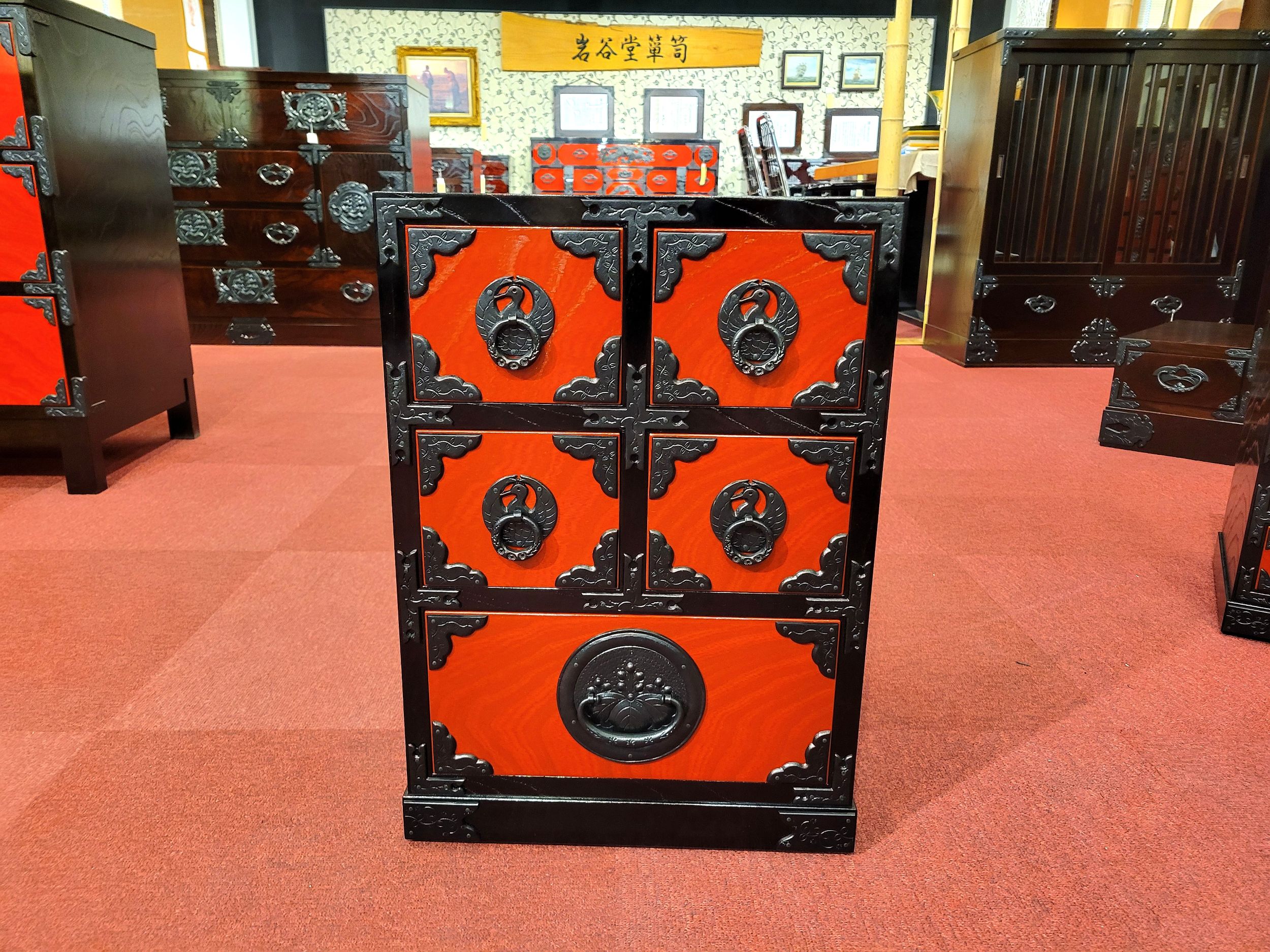サイズ(単位mm) W360 x D350 x H500 拭き漆塗り 南部鉄器金具 鶴