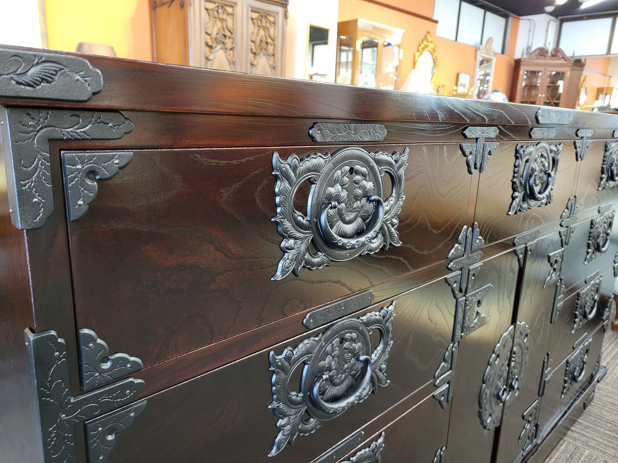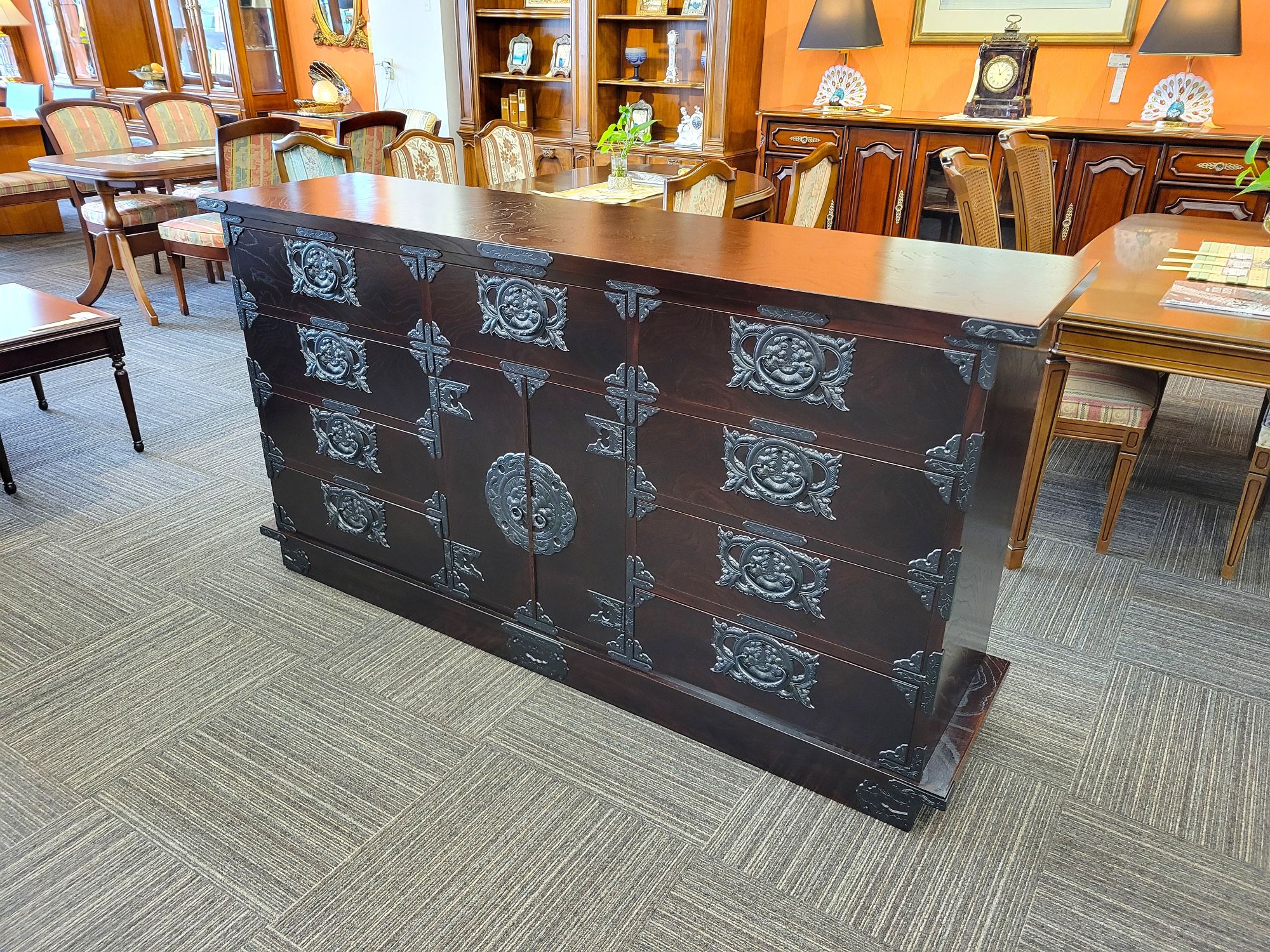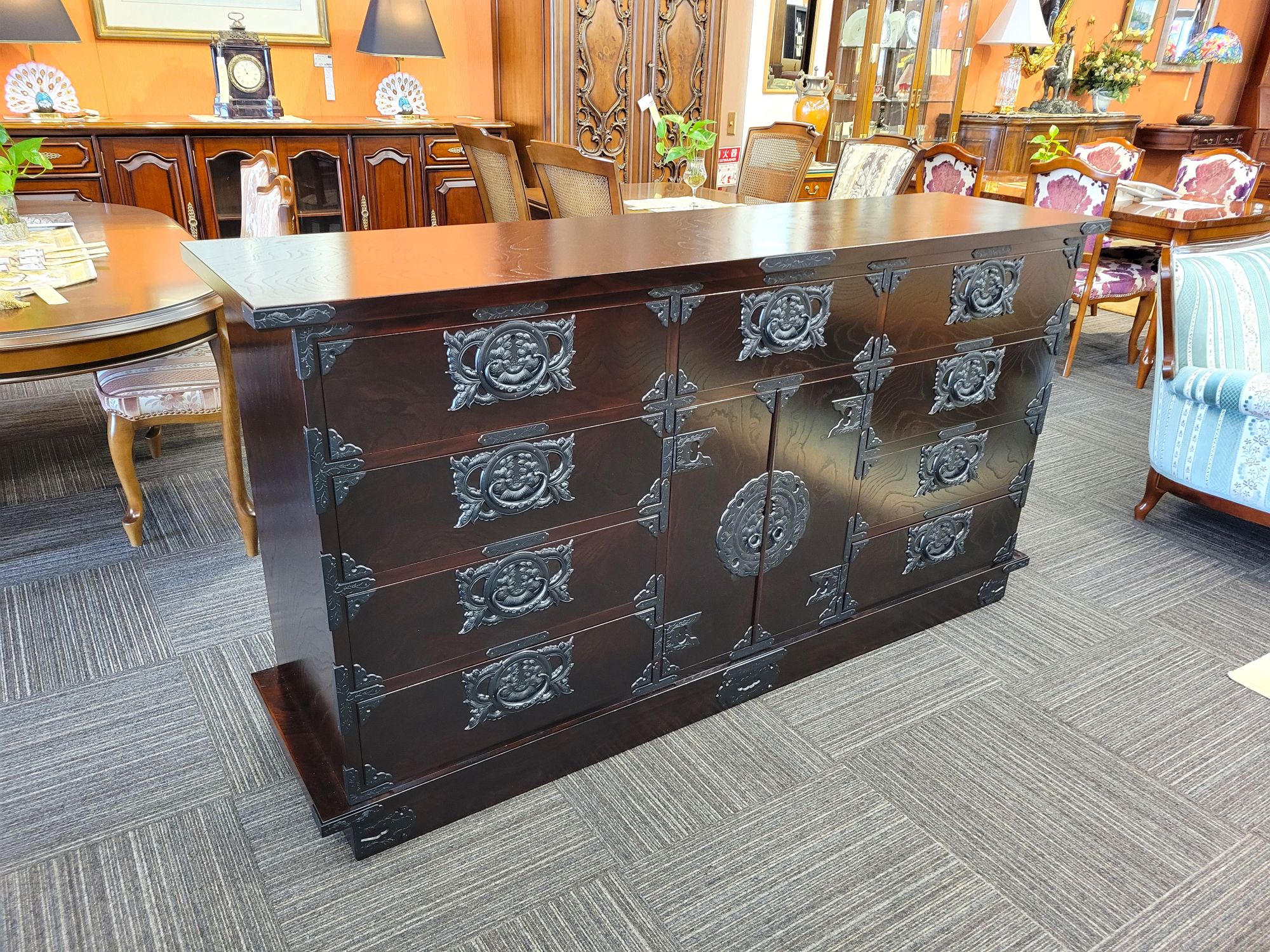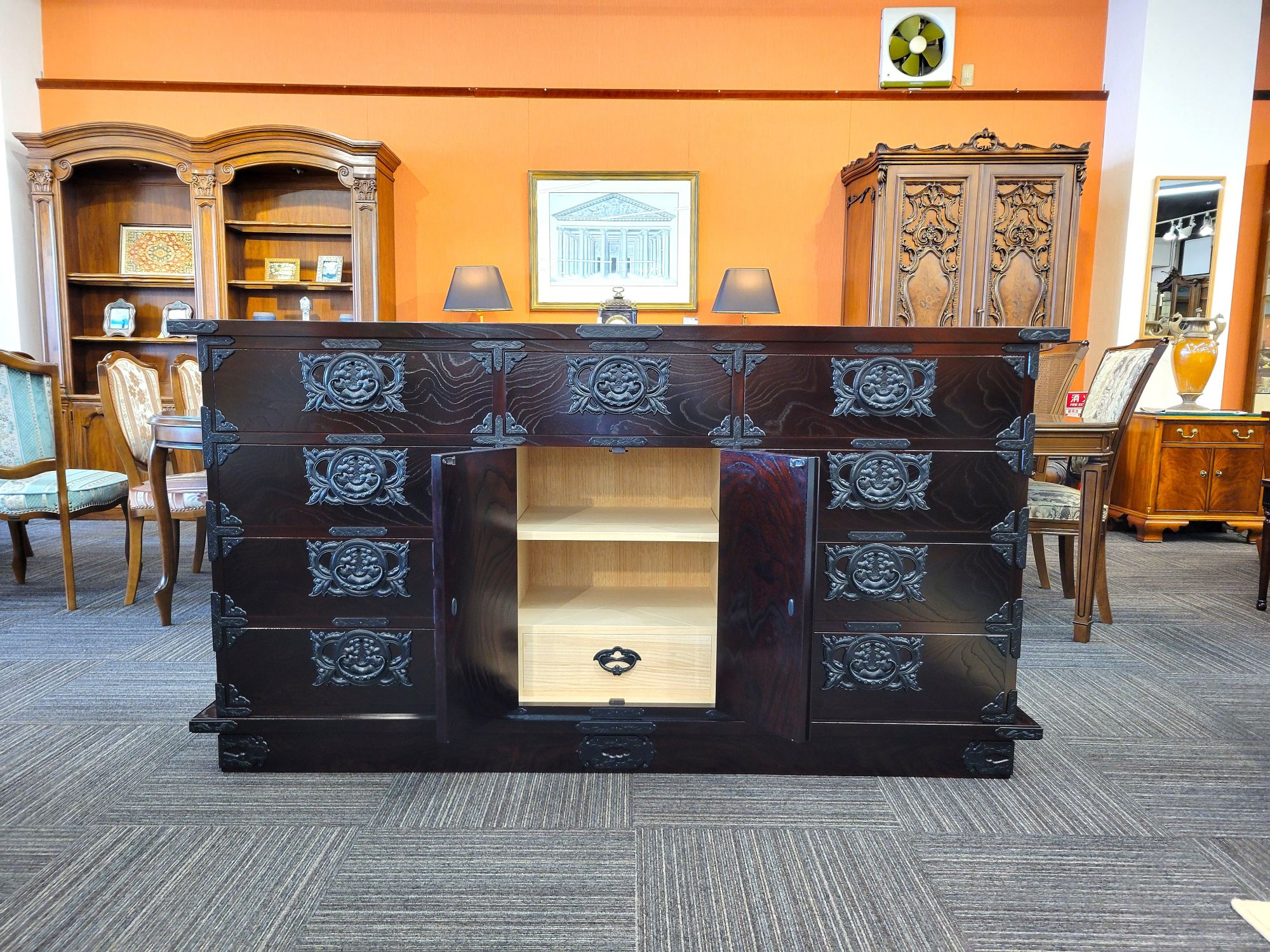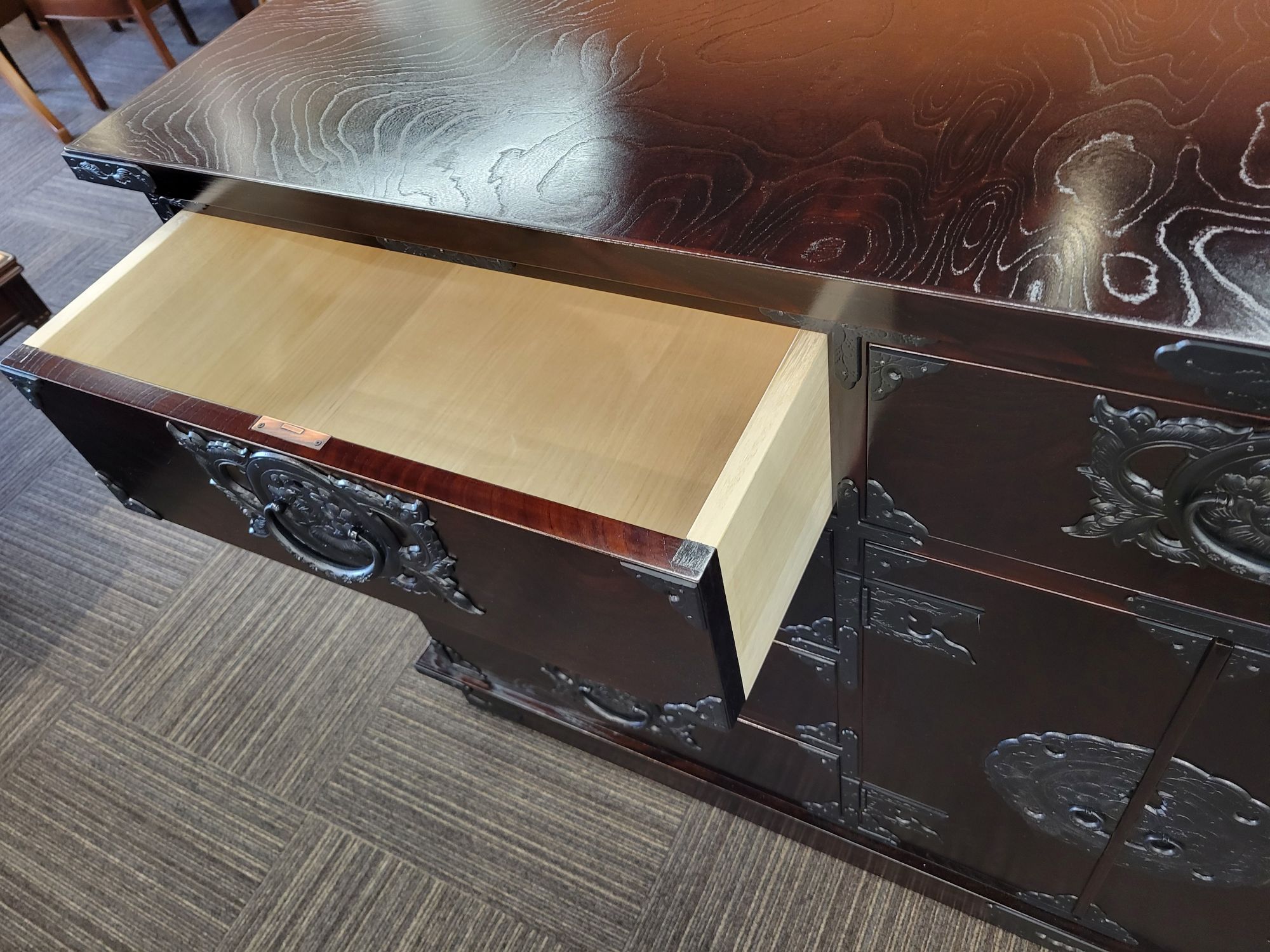 サイズ(単位mm) W1750 x D450 x H930 拭き漆塗り 金具 南部鉄器金具 ボタン