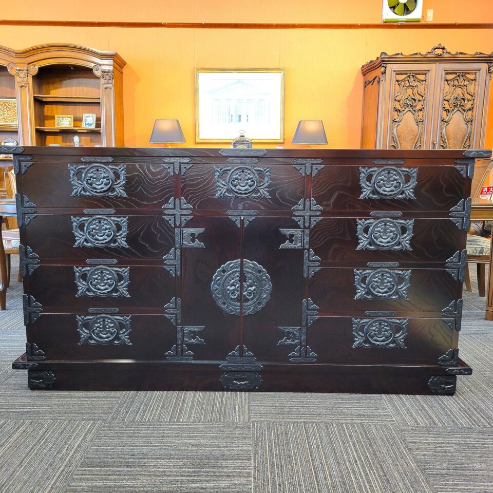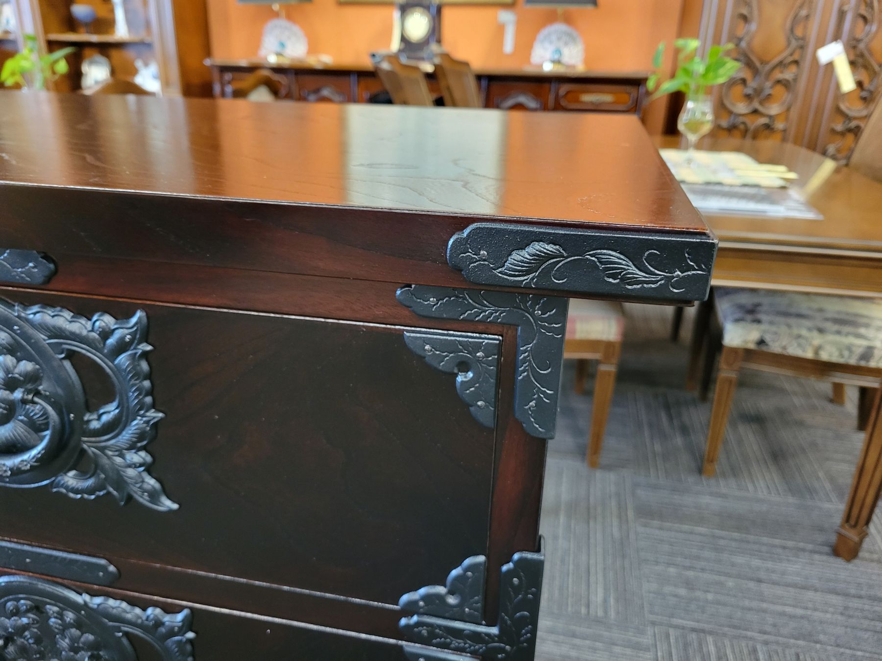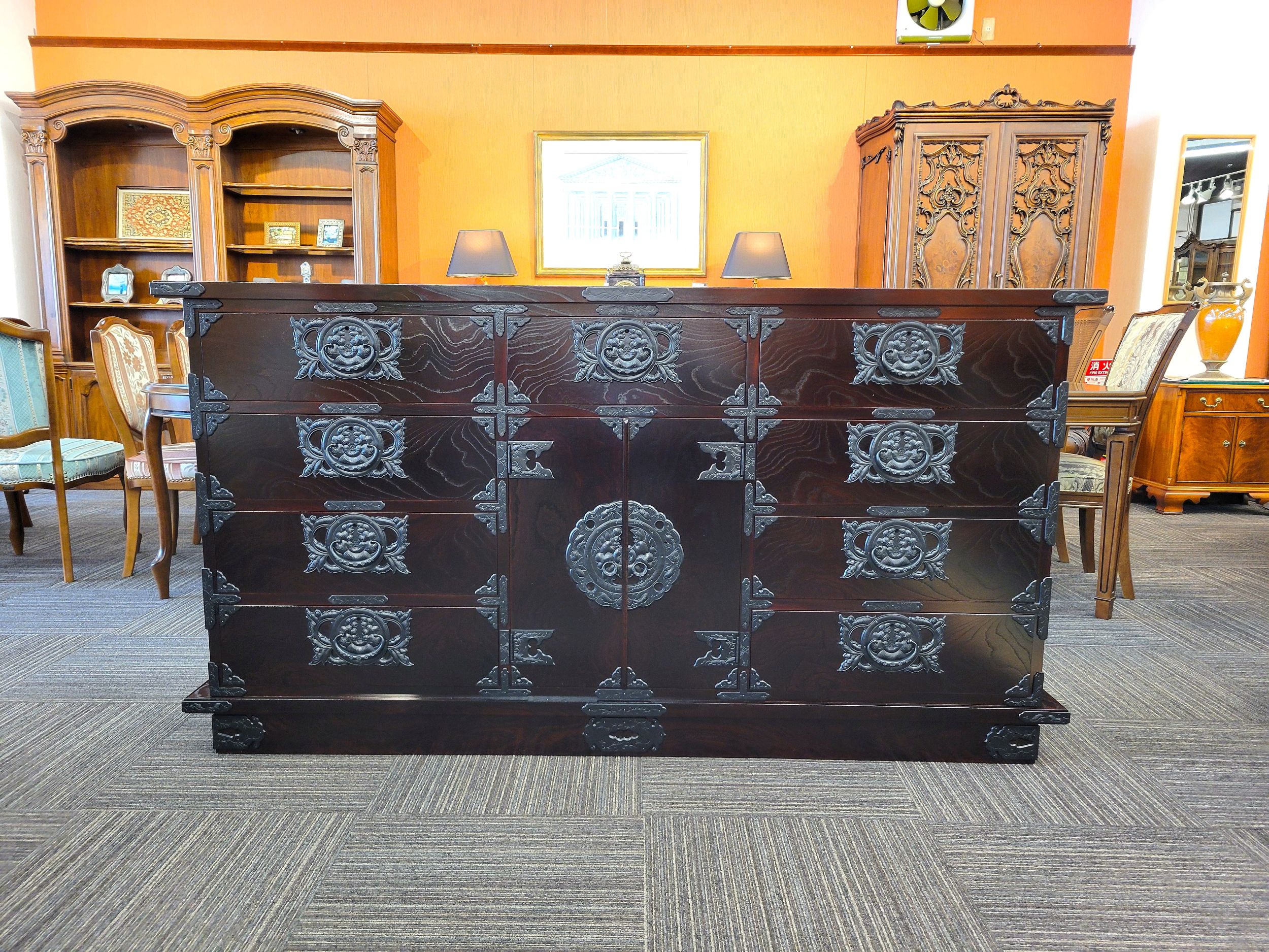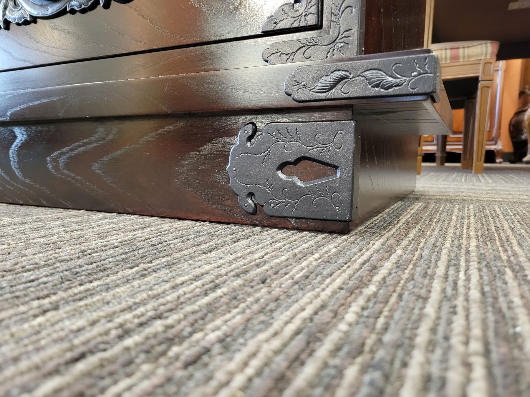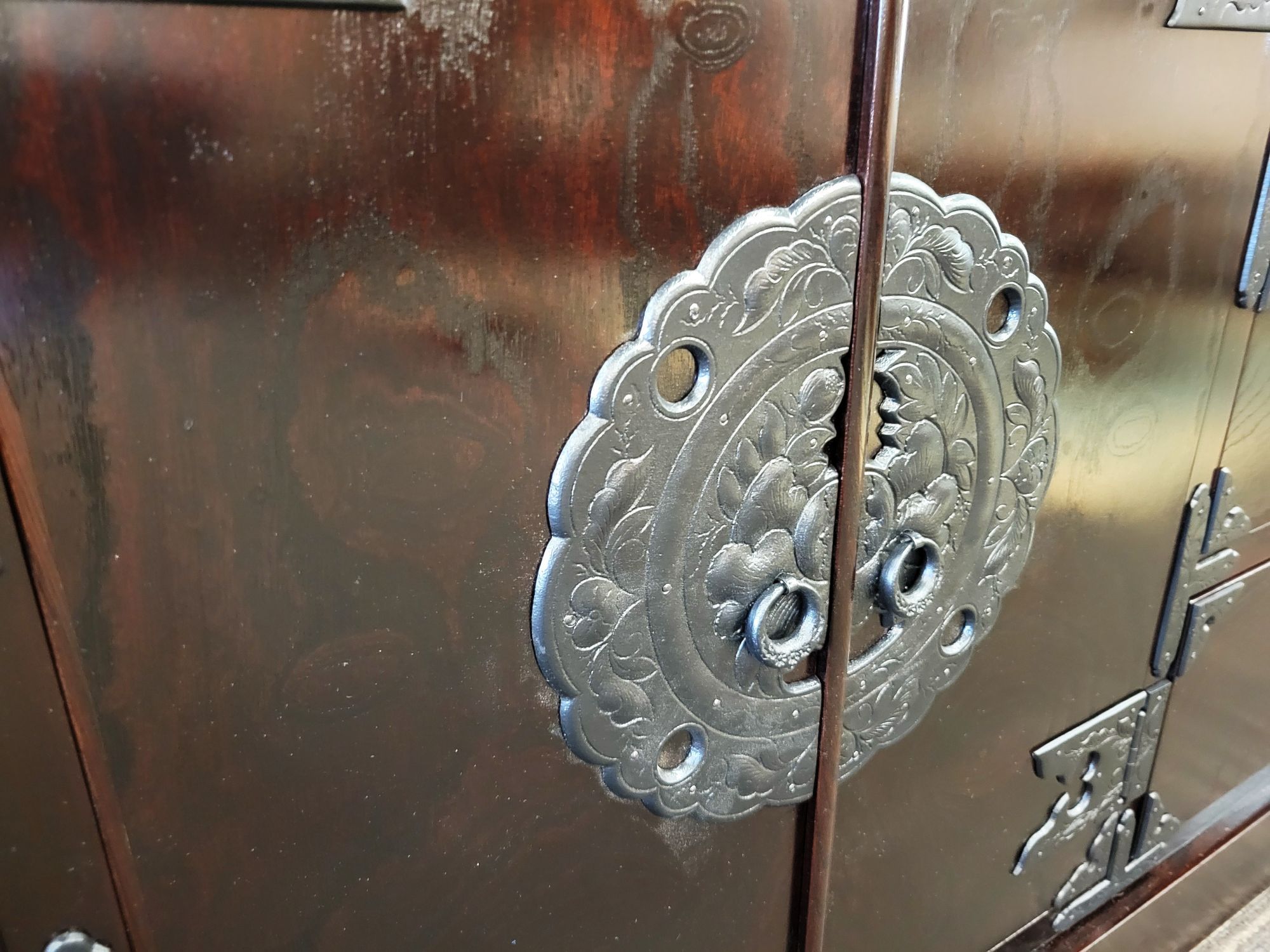 サイズ(単位mm) W1750 x D450 x H930 拭き漆塗り 金具 南部鉄器金具 ボタン